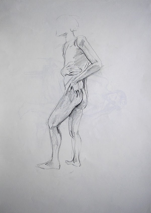 Die Skizzen sind großformatig(A2; seltener A3) und wurden mit Bleistift gezeichnet... zwischendrin gibt es auch ein paar Experimente mit Tuschepinsel.