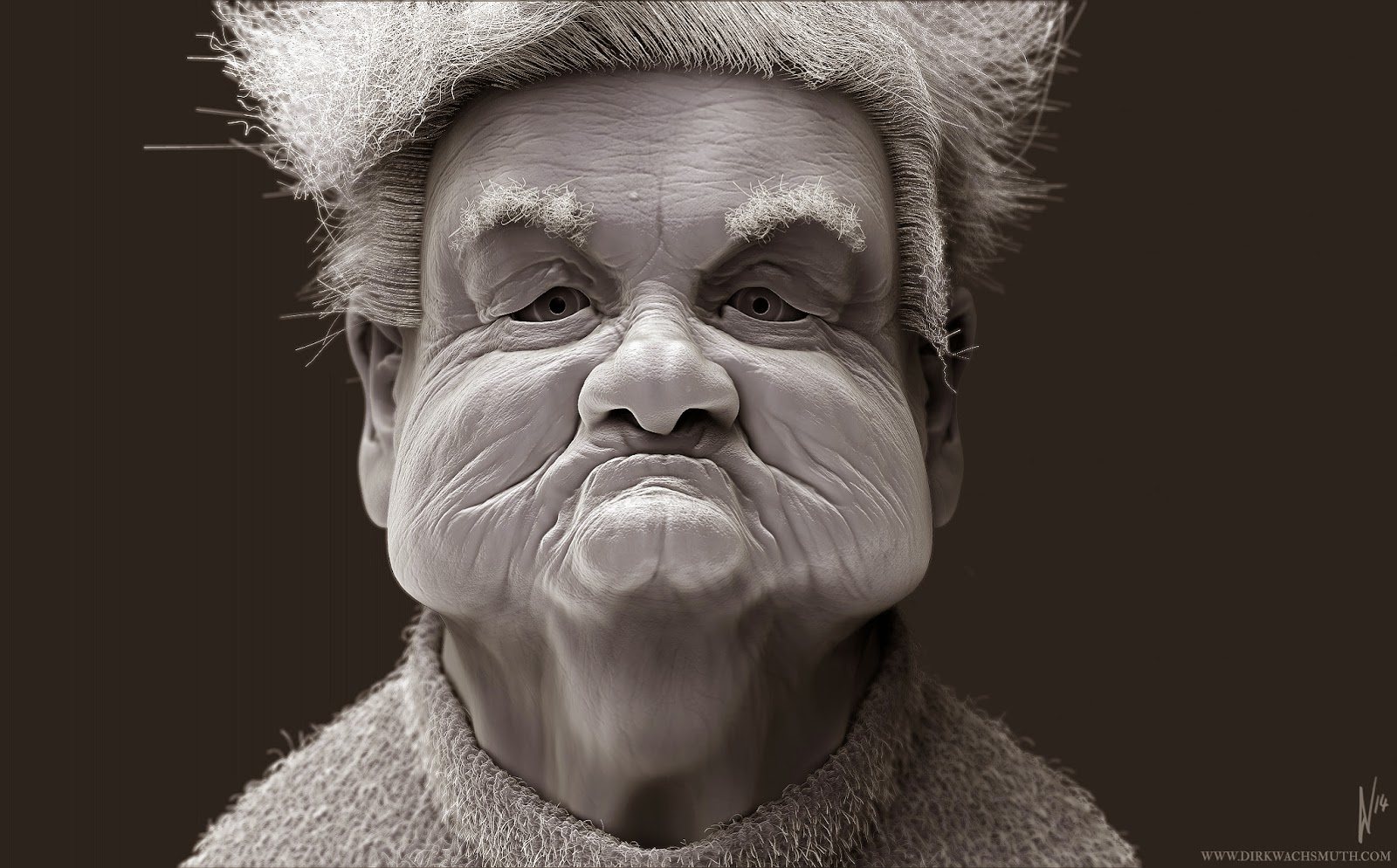 I've doodeling around with ZBrush and practise some techniques on this character. I really love to sculpt wrinkled faces like this. I think she must be a really cheerful person. :D